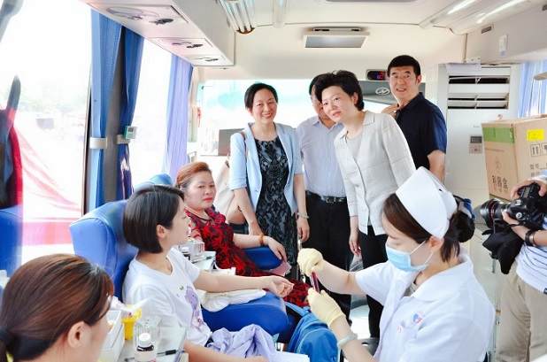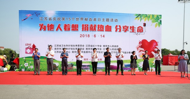6月14日,省卫生计生委、省红十字会、南京市人民政府在南京市江宁区谷里街道共同举行江苏省庆祝第15个“世界献血者日”宣传活动。省卫生计生委谭颖主任、李少冬副主任,省红十字会徐国林副会长,南京市人民政府吴秀亮副秘书长等出席活动,并为南京地区部分无偿献血先进单位和个人代表颁奖、现场慰问了部分献血者和志愿者。