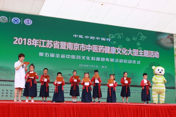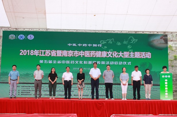 2018年7月1日,正值建党97年之际,也是《中华人民共和国中医药法》正式实施一周年的日子,“中医中药中国行——2018年江苏省暨南京市中医药健康文化大型主题活动、第五届全省中医药文化科普宣传周活动启动仪式”在南京举行。活动由江苏省卫生计生委、江苏省中医药局、南京市卫生计生委主办,主题是“传播中医文化,贯彻中医药法,建设健康江苏”。南京市卫生计生委副主任王静主持开幕式,江苏省卫生计生委副主任、省中医药局局长朱岷致辞,并宣布活动开幕。省发改委、省经信委、省科技厅、省民委、省财政厅、省人社厅、省农委、省文化厅、省食药监局、省旅游局等10个部门相关处室负责同志出席开幕式。作为中医中药中国行第三阶段活动——中医药健康文化推进行动的一部分,全省各设区市同期启动。
