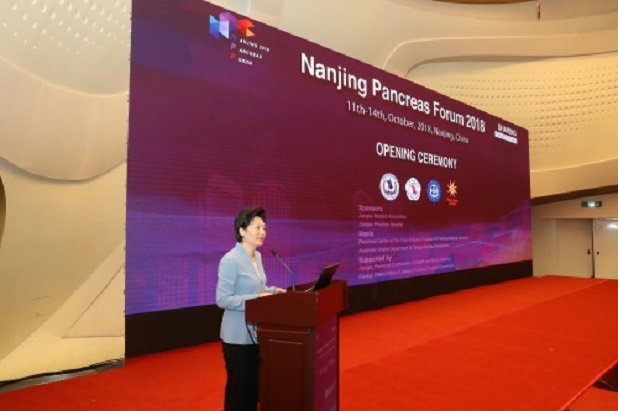 10月12日,谭颖主任出席2018南京国际胰腺峰会开幕式并致辞,见证 “胰腺青年人才培养联盟”倡议书签署。李少冬副主任参加活动。