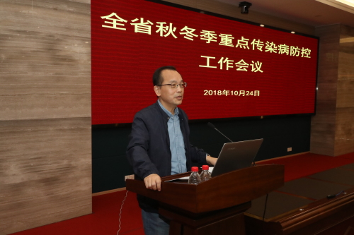 会议还通报了2018年全省重点传染病防控工作情况,对秋冬季重点传染病防控工作进行了部署。汪华强调,各地要切实抓好流感防控工作,不断强化流感监测,大力开展公众宣传教育,积极倡导接种流感疫苗;要有效防范人感染禽流感和中东呼吸综合征,强化对医护人员的培训和住院肺炎病例、不明原因肺炎病例的监测,提高病例的早期发现能力和报告意识;要高度重视手足口病、诺如病毒、流感等重点传染病的聚集性疫情和暴发疫情,加强重点场所的疫情防控,严格落实早发现、早报告、早处置;要不断加强致病菌识别网建设,推广应用细菌性传染病监测预警新技术,增强技术能力,有效处置细菌性传染病疫情。
