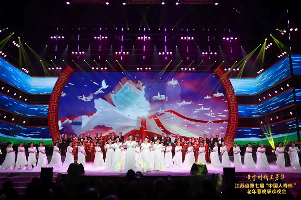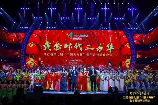 1月19日,由江苏省卫生健康委员会、江苏省民政厅、江苏省老龄工作委员会办公室、中国人寿保险股份有限公司江苏省分公司联合主办的江苏省第七届“中国人寿杯”老年春节联欢晚会在南京五台山体育馆隆重举行。全国老龄办副主任、中国老龄协会副会长朱耀垠,中国人寿保险股份有限公司团险部总经理李英建,省卫生健康委员会主任谭颖,省民政厅厅长吕德明,中国人寿保险股份有限公司江苏省分公司总经理赵国栋,省卫生健康委员会巡视员何小鹏出席晚会。省委宣传部、省委省级机关工委、省委老干部局、省发改委、省教育厅、省公安厅、省人社厅、省文化和旅游厅、省体育局、省总工会等省老龄委成员单位的同志观看了演出。