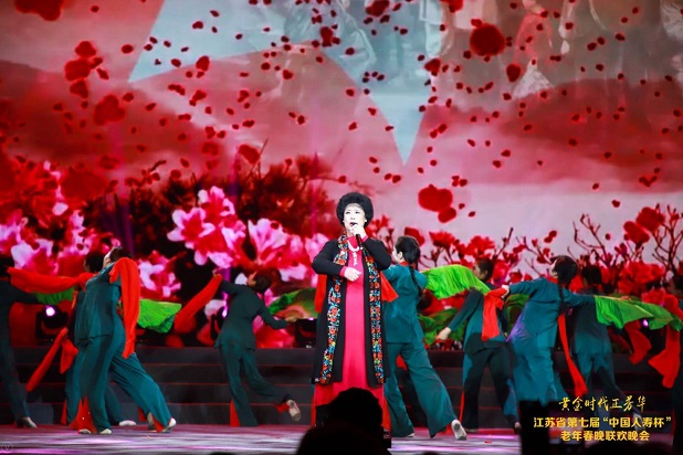 晚会在热闹的歌舞《欢聚一堂》中拉开帷幕,舞蹈《芳华?草原女民兵》、歌曲联唱《岁月如歌》、舞蹈组合《人生四季》带领大家走进老年朋友的峥嵘岁月,共同追忆似水流年,著名歌唱家邓玉华深情演唱大家耳熟能详的歌曲《情深意长》《映山红》,赢得了全场观众的热烈掌声。情景演唱《天下乡亲》、舞蹈《支前》再现当年激情燃烧的革命岁月,男声小合唱《当那一天来临》彰显了和平年代战士们保家卫国的决心,情境小品《我家四十年》以小见大,展现了改革开放40年来我国的经济腾飞和生活巨变,歌舞《花开等你来》向大家展示了一个绿水青山、生态文明的美丽江苏。