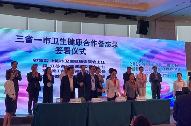 5月11日,2019首届健康长三角峰会在上海举行。峰会以“健康长三角:聚合·共识·行动”为主题,由长三角区域合作办公室指导,上海市、江苏省、浙江省和安徽省卫生健康委和上海交通大学联合主办。会上,上海市、江苏省、浙江省和安徽省卫生健康委签署三省一市卫生健康合作备忘录,共同推进长三角地区卫生健康事业高质量发展。