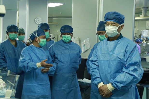 在苏州市立医院新生儿室、新生儿监护病房、配奶间,李少冬副主任详细了解了新生儿医疗、护理相关医院感染防控制度、规范的执行情况,现场询问了医院感染管理部门负责人、科室主任和护士长以及医生护士医院感染防控知识、规范,分析科室医院感染管理的各种风险因素,同时仔细询问并察看新生儿暖箱终末消毒、医疗废物处理、高危患儿的隔离治疗等情况。对于新生儿室大量加床存在的风险隐患,要求苏州市卫生健康委、医院深入研究解决方案,落实整改,并指导当地通过建立市域儿科专科联盟,达到提升基层儿童医疗服务能力,有效分流患儿的目的。