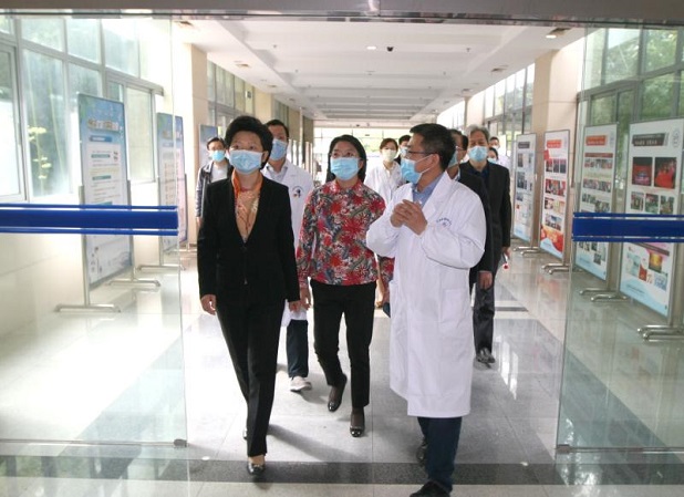 4月16日,省卫生健康委党组书记、主任谭颖赴无锡市疾病预防控制中心、无锡市滨湖区济康医院集中采样点现场调研新冠肺炎疫情防控工作,听取无锡市疫情防控工作情况汇报,并与实验室检测人员视频连线,向坚守在疫情防控一线的疾控工作者表示感谢和慰问。