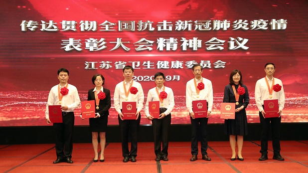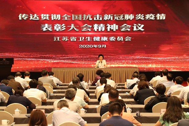 9月15日下午,省卫生健康委在南京召开传达贯彻全国抗击新冠肺炎疫情表彰大会精神会议。会议传达学习了全国抗击新冠肺炎疫情表彰大会精神和9月11日省委常委会会议精神,观看了委机关和直属单位“全国抗击新冠肺炎疫情先进个人”事迹,以及江苏援湖北医疗卫生队和江苏省卫生健康委“全国抗击新冠肺炎疫情先进集体”先进事迹视频,援鄂医疗队员代表、委疫情防控指挥部代表上台发表感言。委党组书记、主任谭颖出席会议并讲话。