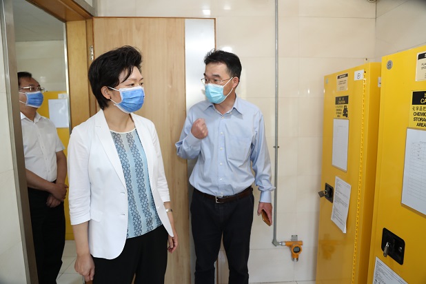 谭颖一行先后到省血吸虫病防治研究所、省原子医学研究所、无锡市人民医院,详细了解三家单位疫情防控措施及安全生产工作开展情况。实地查看预检分诊、发热门诊、PCR实验室、消防控制室、危化品仓库等。现场询问了预约诊疗、院感防控等制度和消防、危化品安全风险管控、隐患排查治理、应急处置措施落实等情况。