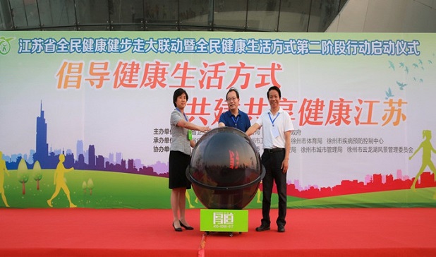为深入推进健康江苏建设,推动全民健身和全民健康深度融合,在全省掀起全民健康生活方式行动的新高潮,结合贯彻落实国家卫生计生委等多部门联合印发的《全民健康生活方式行动方案(2017-2025年)》,2017年6月16日,省卫生计生委、省体育局、徐州市人民政府在徐州市云龙湖音乐厅联合举办以“倡导健康生活方式,共建共享健康江苏”为主题的江苏省全民健康健步走大联动暨全民健康生活方式第二阶段行动启动仪式。省卫生计生委汪华副主任,省体育局颜争鸣副局长,徐州市人民政府李燕副市长以及主承办单位相关领导出席。