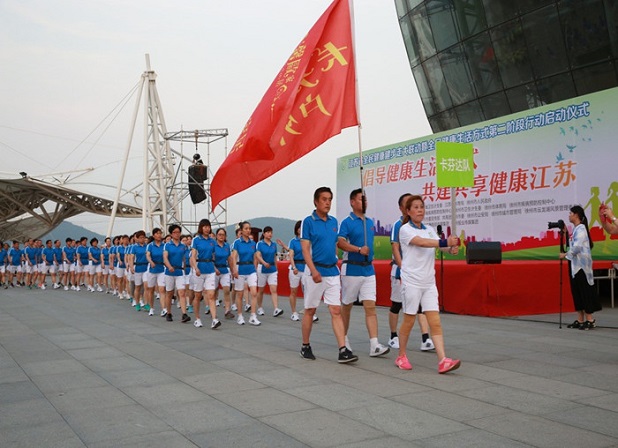 徐州市组建34个由各行业代表组成的健步走方队,共2000余名队员参加了现场活动。启动仪式上,省、市部门领导为市民代表赠送了“健康工具包”,并为2名新聘任的徐州市健步走形象大使颁发了聘书。34名健步走方队的旗手在2名健步走形象大使的带领下共同诵读了健康倡议书。省卫生计生委汪华副主任、省体育局颜争鸣副局长以及徐州市人民政府李燕副市长共同按下启动球,宣布全省全民健康健步走大联动暨全民健康生活方式第二阶段行动启动。之后,34个健步走方队依次从云龙湖音乐厅出发进行环湖健步走,全程近10公里。参与队员精神饱满,行进队伍浩浩荡荡,场面蔚为壮观。活动现场还设置了28块健康生活方式宣传及全省全民健康生活方式行动第一阶段工作回顾展板,省、市多家媒体对活动进行了报道,营造了全民参与的良好氛围。