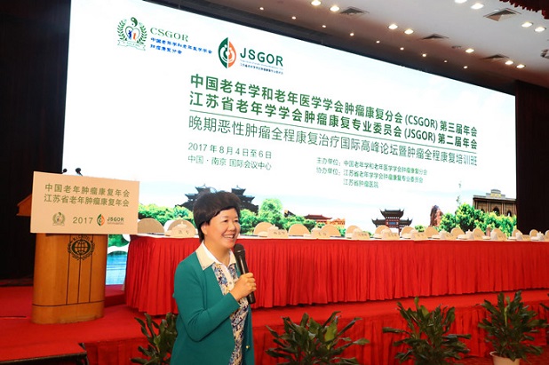 王咏红说,江苏是全国最早进入老龄化的省份,也是目前老龄化比例最高的省份,2016年全省60岁以上老人占总人口的比例达21.49%。同时,恶性肿瘤列江苏居民死因的首位,每3个死亡人口中就有1个死于恶性肿瘤。她指出,大力发展老年医学是实现健康老龄化的重要保证,面对恶性肿瘤这一极大影响老年人健康的重大疾病,合理确定肿瘤康复治疗方案,延长肿瘤患者生存期、改善其生活质量,是我们必须解决好的一个重大课题。她希望,江苏参会代表积极借鉴先进经验和学术成果,不断提高我省肿瘤诊疗水平和科研能力,为保护百姓健康做出积极贡献。