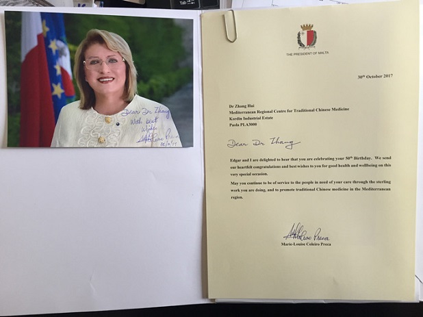 在援马医疗队队长张晖同志50岁生日之际,玛丽?普雷卡总统特地寄来亲笔签名的贺卡表示祝贺,并感谢医疗队为马耳他人民健康所做的贡献。