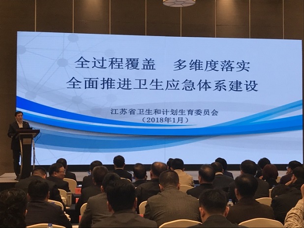 2018年1月18日,全国卫生应急工作会议在我省苏州市召开。国家卫生计生委崔丽副主任出席会议并讲话。省卫生计生委主任谭颖、副主任兰青参加会议,谭颖主任致辞,兰青副主任就“全过程覆盖 多维度落实 全面推进卫生应急体系建设”在大会上作交流发言。