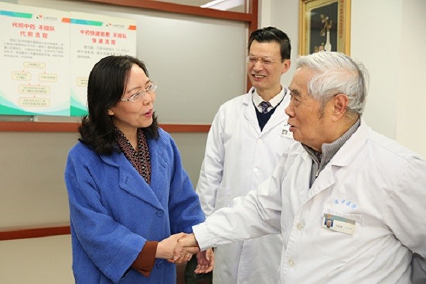 在省中医院,陈星莺一行先后察看了名医堂、全国名老中医传承工作室、互联网医院远程会诊中心、多专科联合治疗门诊等,并召开座谈会听取情况汇报。陈星莺对江苏省中医院大力弘扬中医药特色优势、推进医院改革发展取得的成效给予充分肯定。她强调,要认真学习党的十九大和全国两会精神,强化规划引领,积极打造中医药高峰;继续投身医改,加快现代医院管理制度建设;在已有基础上继续提升服务、强化学科建设,当好健康江苏建设的排头兵;进一步完善人才培养机制,建立各层次中医人才梯队;加强国际合作交流,推动中医药标准建设,推进中医药“走出去”国际化进程。
