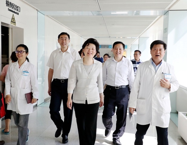 5月15日上午,谭颖主任带队赴南京市调研工作,实地考察了南京鼓楼医院门诊、急诊、消化内镜中心、远程医疗会诊中心、中心药房等区域,并召开座谈会详细了解了南京市以及鼓楼医院药品、高值耗材及试剂等的采购流程以及鼓楼医院智能物流供应链系(SPD)的建设情况。副主任兰青、南京市副市长胡万进、南京市卫生计生委主任方中友等参加调研。