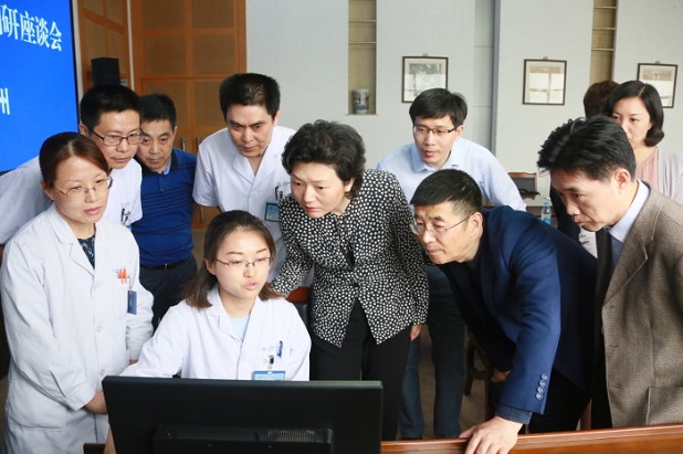 谭颖主任一行先后实地走访了常州市中医医院和常州市第一人民医院。在常州市中医医院,参观了智能中药房、临床药学咨询门诊、颈腰痛中心、远程会诊中心和孟河医派博物馆等,实地察看了健康卡一体机服务、智能医保审核、合理用药监测等工作开展情况;在常州市第一人民医院,调研组参观了常州市卫生计生委党建教育基地、医院临床技能培训中心、肝胆外科病区等,并察看了临床合理用药信息化管控、临床用药监控和超常预警、处方专项点评工作实施情况。