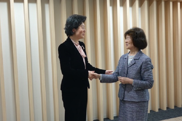 谭颖主任与日本国际协力中心理事长山野幸之亲切交谈