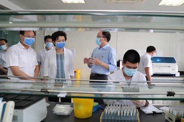 谭颖一行先后到省血吸虫病防治研究所、省原子医学研究所、无锡市人民医院,详细了解三家单位疫情防控措施及安全生产工作开展情况。实地查看预检分诊、发热门诊、PCR实验室、消防控制室、危化品仓库等。现场询问了预约诊疗、院感防控等制度和消防、危化品安全风险管控、隐患排查治理、应急处置措施落实等情况。