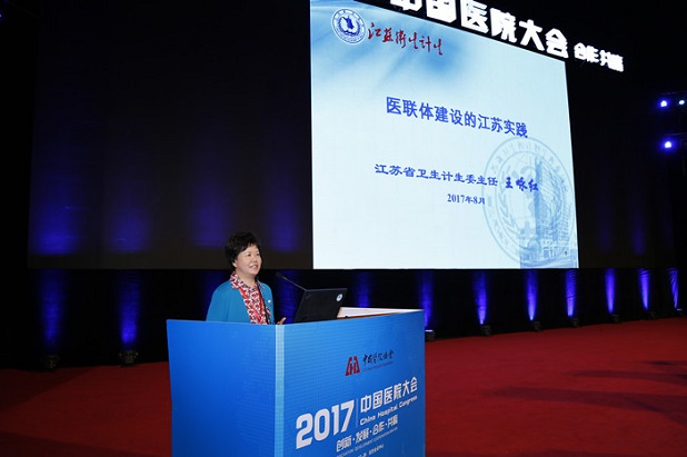 8月27日,王咏红主任出席2017中国医院大会,并在分论坛——各级公立医院在分级诊疗中的角色担当上做《医联体建设的江苏实践》专题报告。